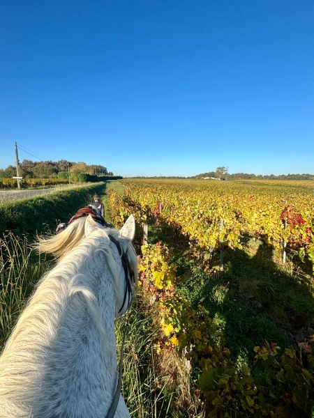 Les grands vins de Bordeaux à cheval avec Cap Rando: un vrai dépaysement toujours avec les meilleures prestations accueil, encadrement, hébergement, cavalerie, intendance, guides, sécurité, … j adhère ! Et toujours les excellents conseils et services de Cap Rando, des vrais pros !