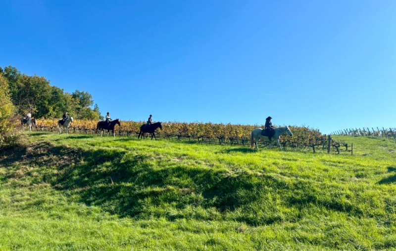 Day 5: Breakfast at 8 a.m., departure on horseback at 9:30 a.m. It is a region of vineyards interspersed with small woods that takes you to Château Mayne-Veil (Fronsac), for a picnic and tasting of a Fronsac wine. Departure around 3 p.m. towards Cubnezais through a flatter landscape, with passages in wetlands without vineyards. The evening takes place at the winegrower of the Domaine de la Gravette (Bordeaux wine). Tasting during the meal. Night on site.