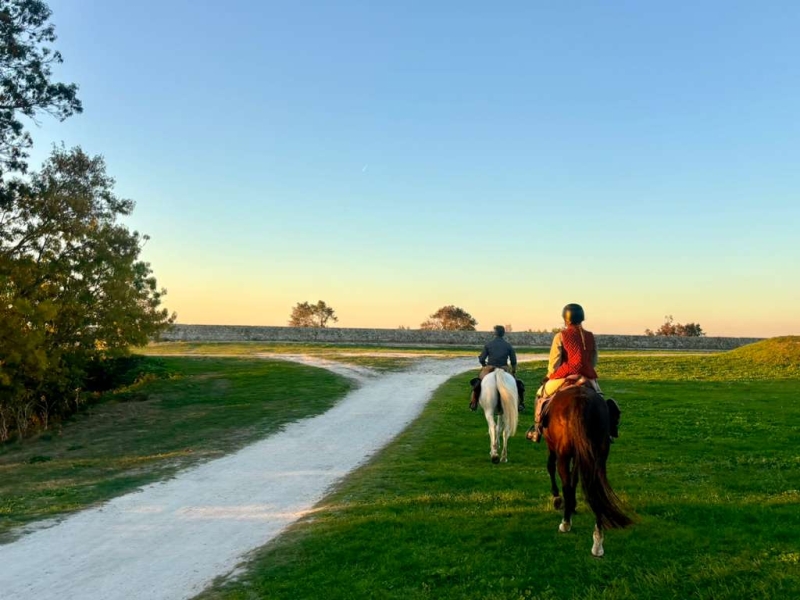 Day 2:Breakfast at 8 a.m., transfer to the horses at 9 a.m. and departure for the hike at 10 a.m. in a flat landscape between vineyards and forests. The picnic takes place on the banks of the Gironde. Tasting at Château Maslescasse (Médoc) after lunch. We cross the Gironde, with the horses, on the ferry, towards Blaye (duration 40 minutes). You enter the 18th century Vauban citadel on horseback (visit). Night at the hotel.