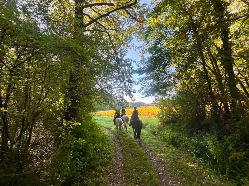 Day 7: Breakfast at 8 a.m., departure on horseback around 9:30 a.m. You are now in the Entre-deux-mers region, with its varied, hilly, wooded landscapes and its beautiful wine properties. You pass near the Rauzan castle, dating from the 13th century. In the afternoon, a slightly hilly, half-vineyard, half-forest route leads you to the Château du Broustaret (bed and breakfast). You share dinner in the town of Cadillac where you taste the Premières Côtes de Bordeaux.