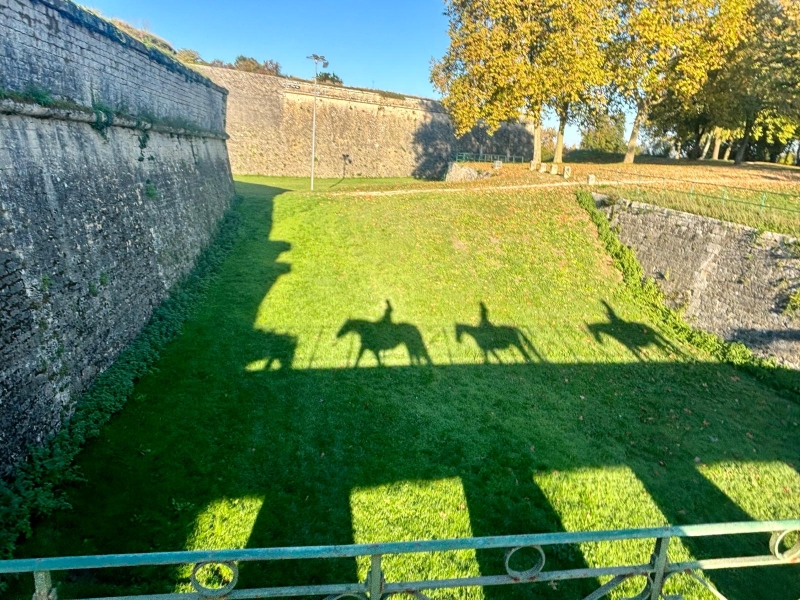 Day 6: Breakfast at 8 a.m., departure from the hotel at 9 a.m. and riding at 10 a.m. You cross the Cotes de Bourg in a hilly landscape. Picnic with a producer at Chateau Lamothe and tasting of Cote de Bourg. Departure around 3 p.m. towards the Citadel of Blaye. You enter on horseback into the 18th century Vauban citadel (visit). Night at the hotel.