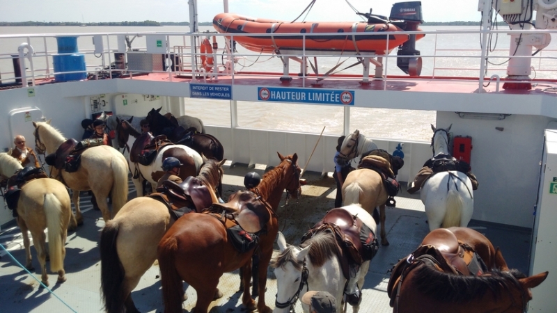 Day 7: This morning, you cross the Gironde, with the horses on the ferry, towards Lamarque and the Medoc (duration 40 mins). The picnic is at the foot of the Saint Seurin church and its panoramic dome. Tasting at Chateau Maslescasse (Medoc). You continue through the rows of Medoc vines to end your ride in Moulis-en Médoc. Night in a guesthouse.