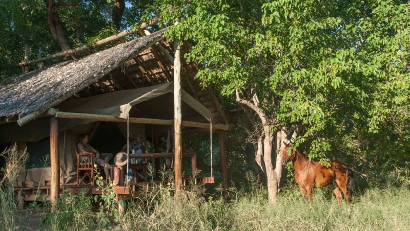 The afternoon ride takes them from the stables to Tree Camp. The route typically offers rich encounters with elephants, waterbuck, giraffes, impalas, wildebeest, and zebras. Signs of the many predators that inhabit these rich river environments are plentiful, and chance encounters are possible. The ride usually takes about two hours, and riders begin to forge a real bond with their individual mounts. The trappings of modern life begin to fade as the sense of adventure and travel deepens. Tree Camp is a truly magnificent place where one is enveloped by the exceptional qualities of the African wilderness.