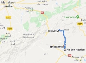 Sunday afternoon at Ouarzazate airport (free transfer). From Marrakech, you can take a bus to Ouarzazate, 3h30 drive, companies: SUPRATOUR or CTM. We can also book a taxi for you (around 70 € - 4 hours drive).