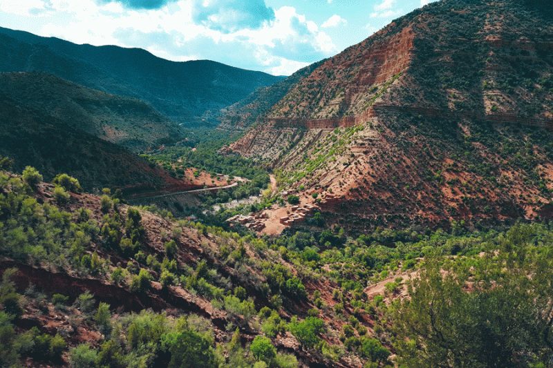 Day 3: After breakfast, you continue your horseback ride to the famous Paradise Valley: a popular place for hippies in the 60s, and breathtakingly beautiful. Passage along the Oued Tanit to the gorges, then you ride up to reach the beautiful village of Kacht. This passage offers you a beautiful panoramic view of the mountains and the high valleys of the Western Atlas. Late morning descending by a path overlooking the canyon of the Tifrit Valley and its villages clinging to the cliffs. Lunch at the edge of the Oued and swimming possible in natural pools. In the afternoon, you go back up to join your evening guest house which overlooks the Valley of Paradise.