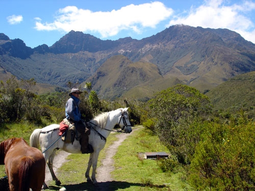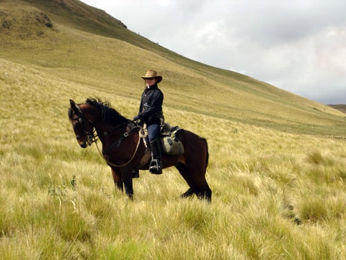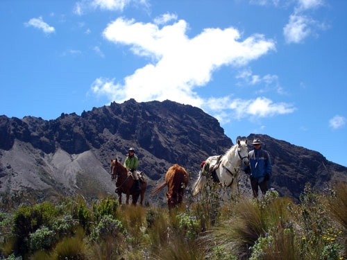 An early morning departure from Quito takes you north through an arid valley dotted with acacia trees, cacti, and avocado groves. After passing the snow-capped volcano of Cayambe, which straddles the equator, you will remount your horses and, once settled, head towards the beautiful, verdant Zuleta Valley. This fertile glacial valley was chosen centuries ago by the first settlers. Riders can admire the terraces left by pre-Inca groups and, at the working hacienda you visit, see examples of the pottery made locally. This valley and the hacienda have been popular destinations for many years. The English-speaking owners are charming and will welcome you to their farm, introducing you to their Andalusian horses and their herd of dairy cows.
