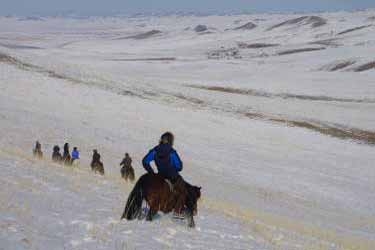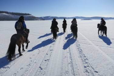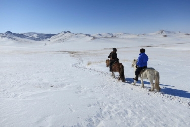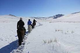 - The magic of a horseback ride in Mongolia, a beautiful winter landscape, deserted by tourists.