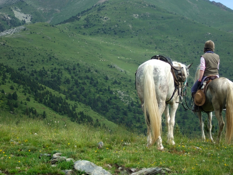After breakfast, you head to the pasture where the horses are kept and prepare everything for the next two days, which promise breathtaking views and fresh air. At lunchtime, you join the cattle that left earlier in the morning. After the picnic, you help gather the scattered livestock. From now on, you see no more roads or cars and enter the Bassegoda Massif (895 m/2,895 ft), which dominates the entire valley. You follow the trails parallel to the Pincaro stream, a tributary of the Muga River. This leads you to the Bassegoda Pass and the Principi Pass (1,172 m/3,845,114 ft). Here, on this vast open plain of red pine forests, you rejoin the cattle. You ride to the Comella house for your picnic and leave the cattle there. You then ride to the "Morato" where you set up camp with tents and campfires and spend a pleasant evening, letting the horses graze freely around you. The cultural value of this valley is of great importance. There are about 15 sanctuaries, shrines, and monasteries, all dating from the years 980 and 1200 AD. The most important are Sant Pere de Albanyà, Sant Bartomeu del Pincaró, Sant Miquel de Bassegoda, and Sant Julià de Ribelles.