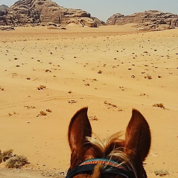 Our horse riding trips in Jordan are offered to experienced riders: all Arab horses are very active and there are many long trots and gallops in large spaces. Arabian horses were bred in desert climates and are known for their endurance and speed. In Jordan, we work with a Bedouin family based in Wadi Rum. We use their horses and they guide the trip: a real local experience !