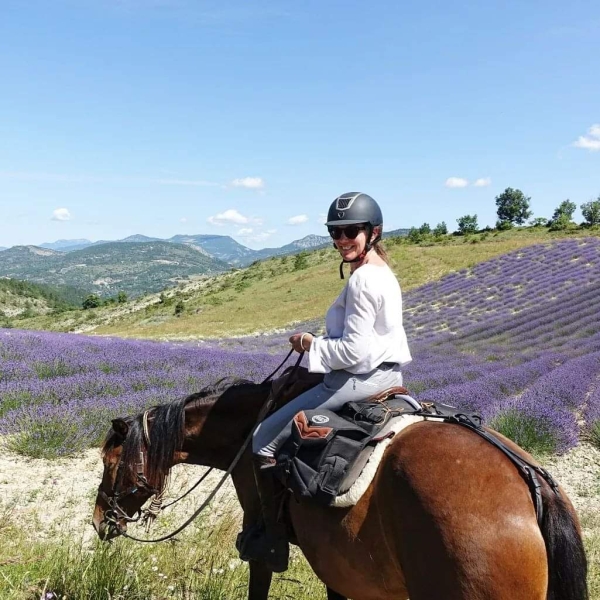 On horseback trail ride in the "Drome Provençale": the Provence North gateway ! A unique ride in a contrasting universe: between lavender fields, apricot trees, varied forests with a view overlooking the valleys. Come and enjoy yourself in the heart of the Regional Natural Park of Provence Baronnies: a setting conducive to relaxation !
